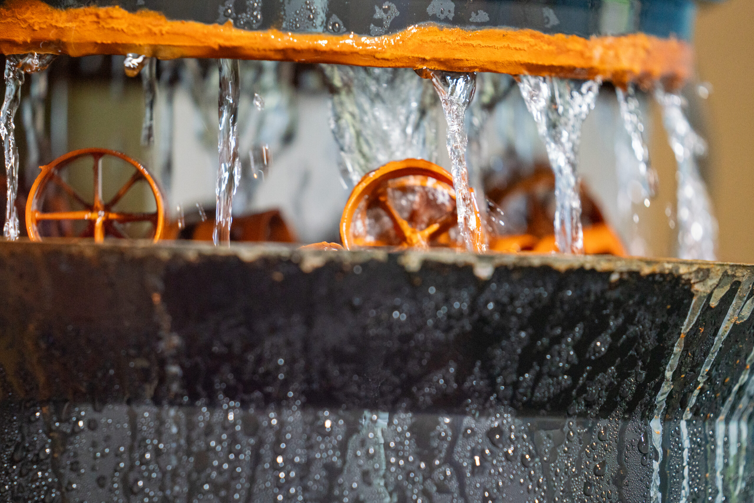 The farm uses a system of raceways, long and narrow flow-through tanks, to move the fish from one pond to another and the raceways are flushed weekly to remove waste.