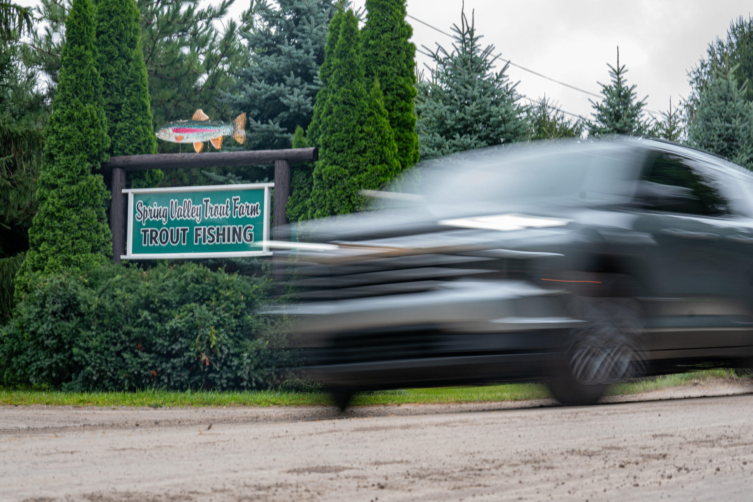 Cars drive past Spring Valley Trout Farm in Dexter, Michigan on June 26, 2025. (Photo Credit: Donté Smith/Great Lakes Now)