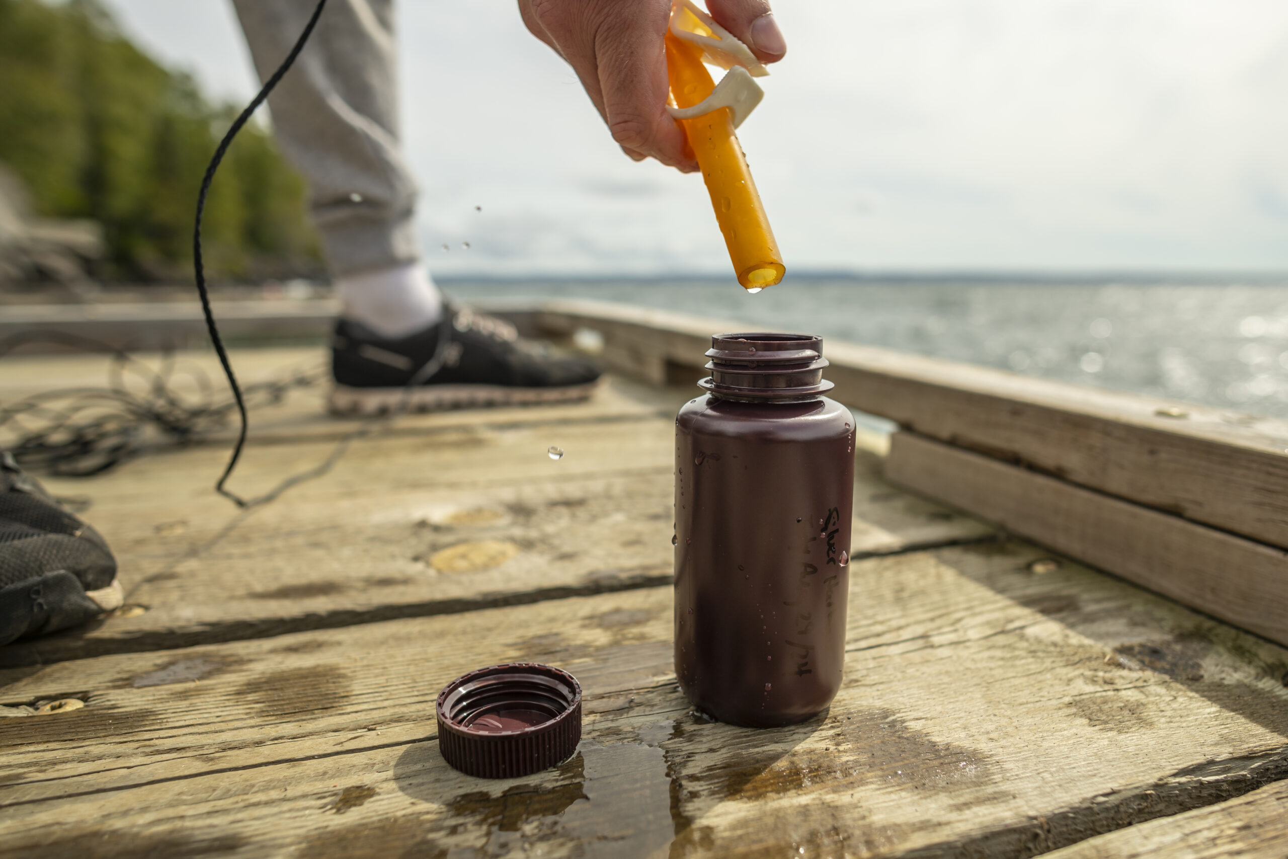 Nathan empties the 53 microweave student plankton net into a plastic bottle. photo captured at Silver Harbour, Lake Superio Nathan empties the 53 microweave student plankton net into a plastic bottle. photo captured at Silver Harbour, Lake Superio September 2, 2025 Mila Murray 0 Likes