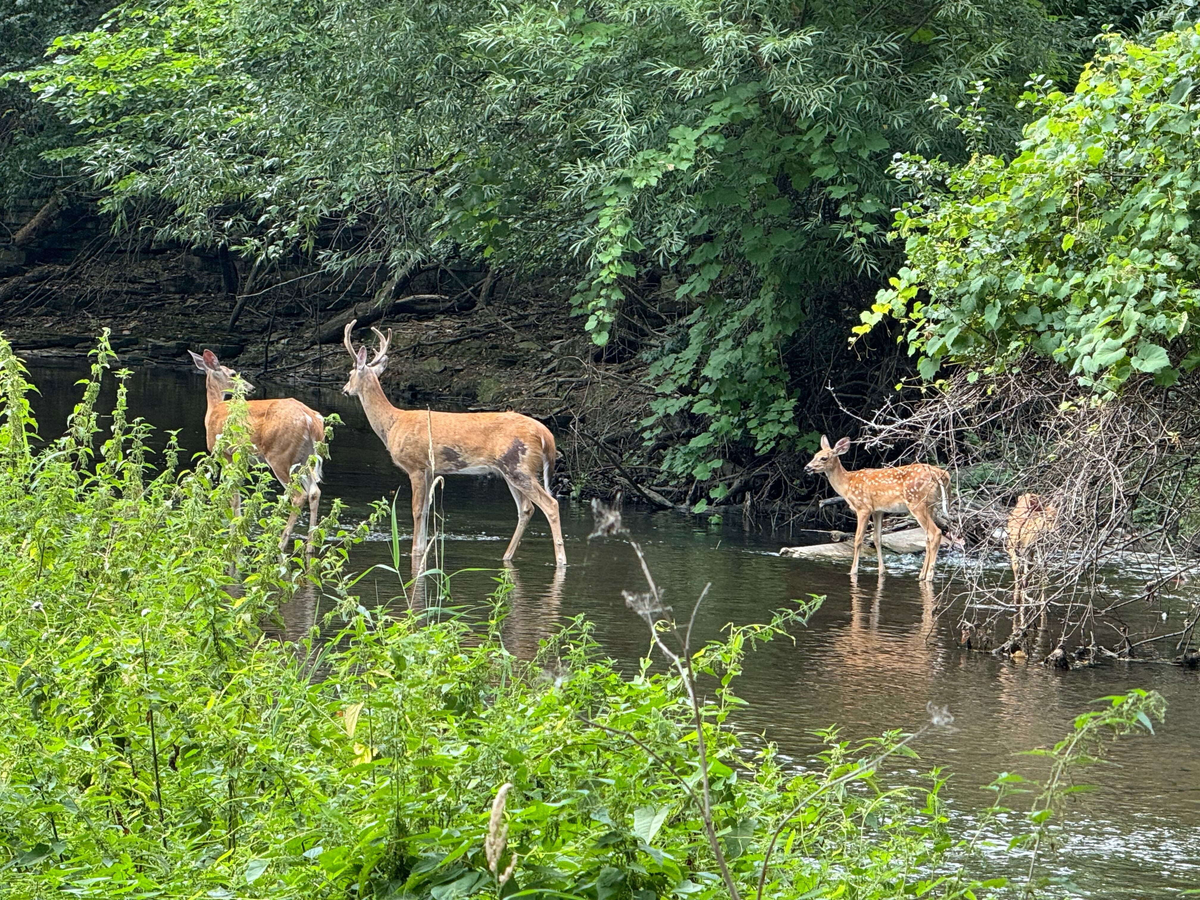 The deer she mentions are a small herd including several leucistic individuals (all white, yet not albino) that reside at Forest Lawn, on the banks of Scajaquada.