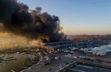 -A fire Friday destroyed an enormous building loaded with hundreds of boats stored for the winter in southeastern Michigan.