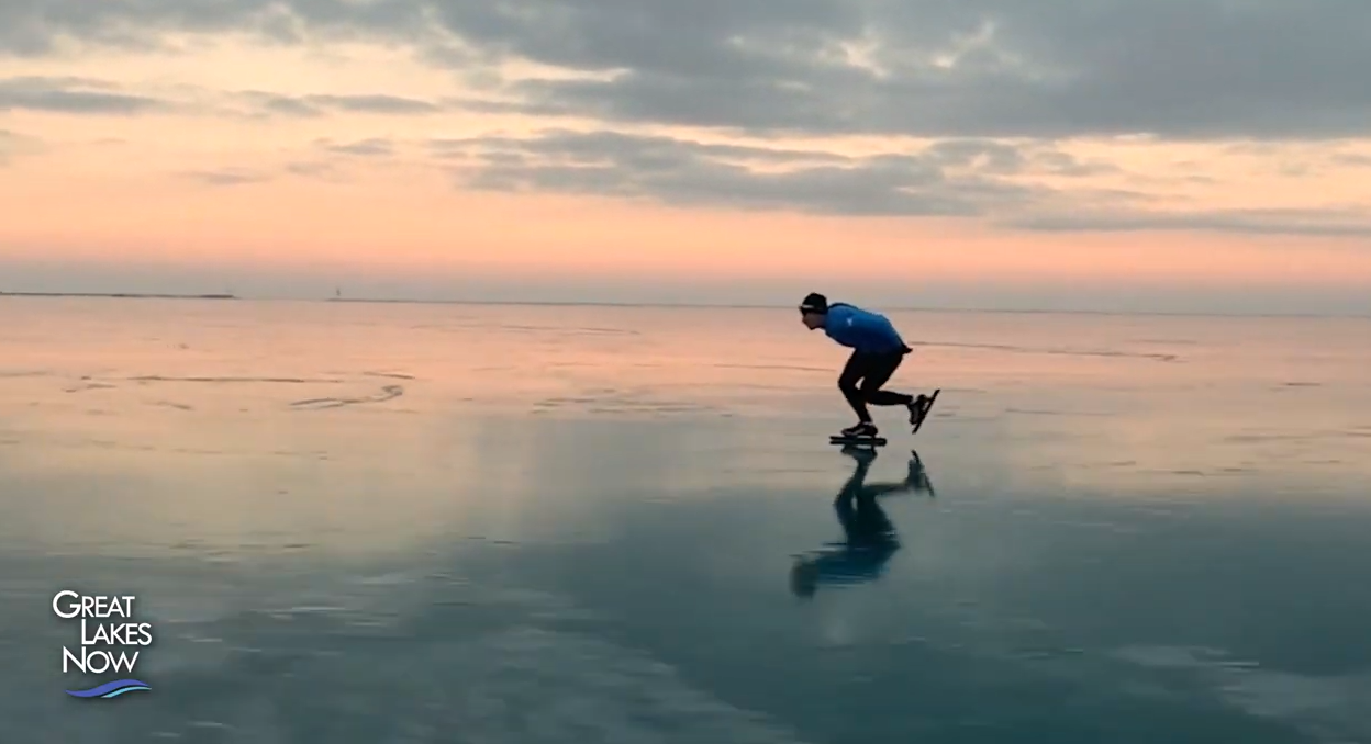Scientists work to understand the causes and potential effects of less ice cover on the Great Lakes, a documentary photographer and three longtime ice anglers reflect on changes to the winter fishing season, and a competitive speed skater reflects on the joys of “wild ice.”